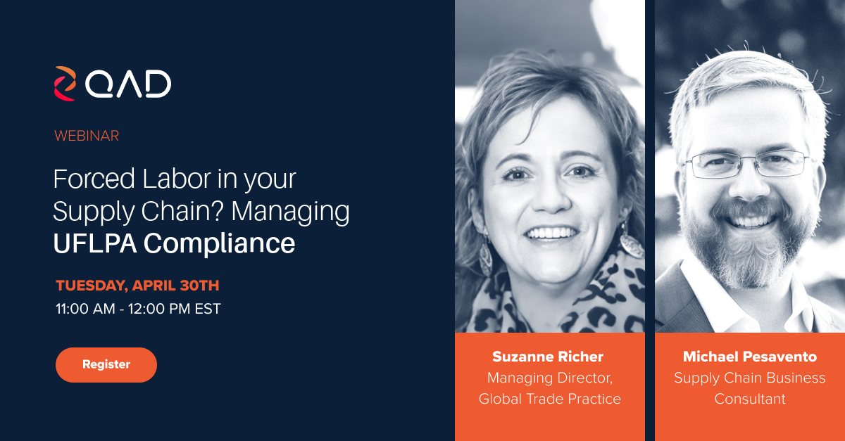 Join us for a complimentary webinar: “Slavery in your Supply Chain? Managing UFLPA Compliance”. In this session, we’ll delve into the Uyghur Forced Labor Prevention Act (UFLPA) and explore practical strategies for ensuring compliance in your supply chain.
